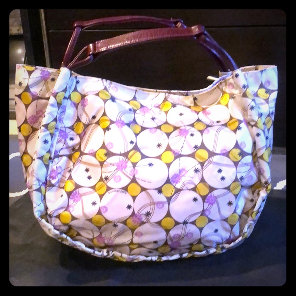 Brontibay Paris tutu nylon tote with leather handles, small size, like new used twice, three inside pockets one with zipper, magnet closure.