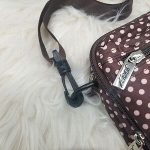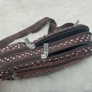 Very good condition. Nylon crossbody bag. Approximate measurements are 10" x 6" x 2". Strap is approximately 59" and is fully adjustable.