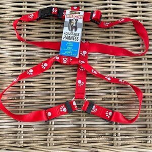 Nylon Dog Harness Reflective Adjustable Red Paws Large 1”x28-36” Aspen Pet NWT