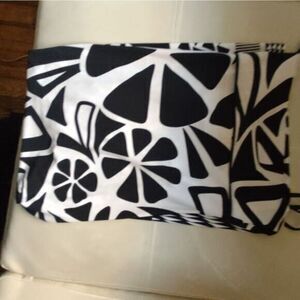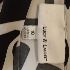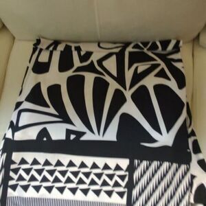 This is a black and white print in a nylon and Lycra fabric. it is a size 10, and it's in perfect condition. Barely worn.