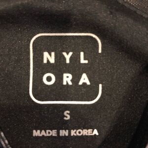 Nylora Black & white, neon and mesh sports bra. Removable cups. Made of polyester, nylon and spandex. NWT.