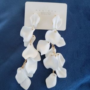 Nyu‎ Nyu dangle white and gold flower petal earrings lightweight new