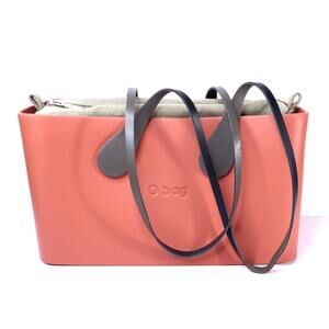 O BAG Classic Rubber Shoulder Bag Salmon Canvas Insert Tote Bag