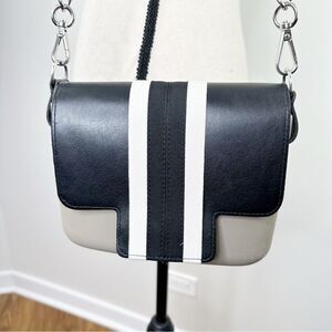 O BAG — Italian Bag Taupe Black Cream Cross-Body Bag w/Chain Strap Missing Part