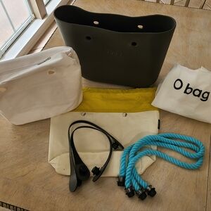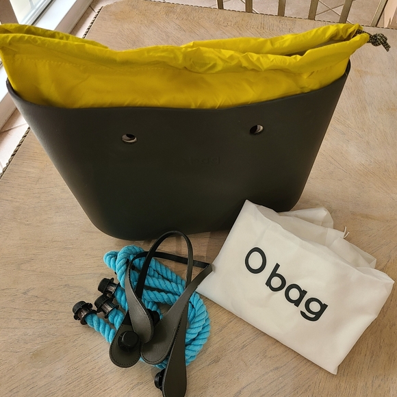 O Bag, made in Italy. Borsa 330. top is 16 wide, bottom is 14 wide, 12 inch height. Comes with 2 inserts, one draw string and one zippered. Inserts can be used together or separately. 2 sets of handles, one 20 inchs end to end (handle strap), one 33 inches end to end (shoulder strap). Dust bag included. Clean like new condition!