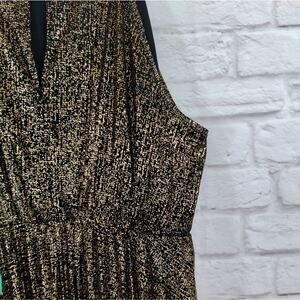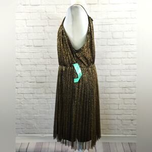 O Candalite Petite Women's Gold Black Pleated Sleeveless Midi Knee Dress NWT PXL details: