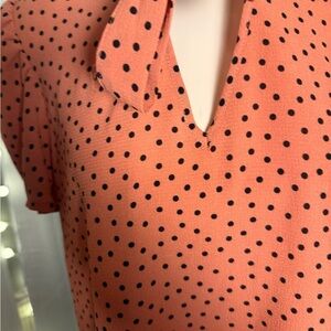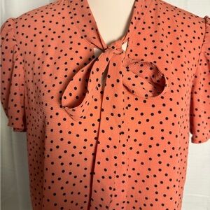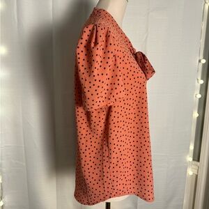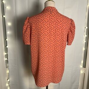 O L M Black and Orange Puff Sleeve Blouse with Tie Front
