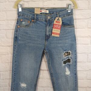 O Levi's 502 Camo Distressed Regular Taper Blue Denim Jeans NWT 16 Reg 28x28