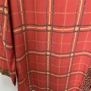 O R A | Ora Vintage Red Plaid Tunic Top Animal Print Trim Medium Off Center Neck