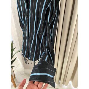 O Shirt Womens Black & Blue Striped Button-Up Shirt Size 14 By Cotton/Polyester