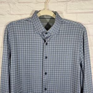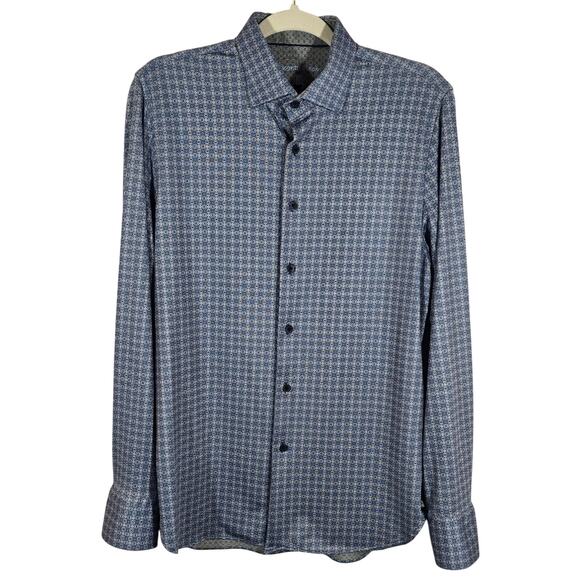 O Visconti Black Blue Performance Stretch Floral Long Sleeve Button Up Shirt S details: