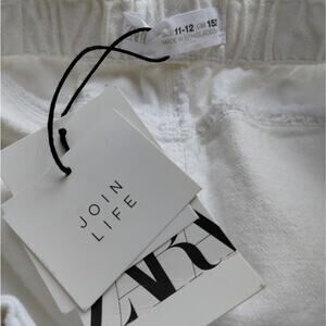 O Zara Big Girls White Paperbag High Rise Cotton Denim Jean Skirt NWT Size 11-12 details: