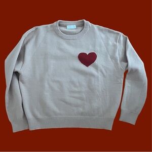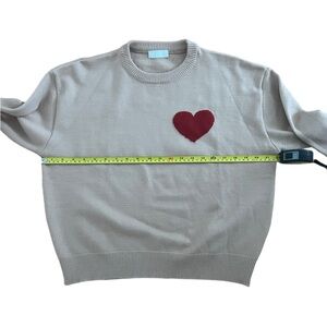 O2 Beige Sweater with Red Heart | Cozy Viscose Blend Pullover