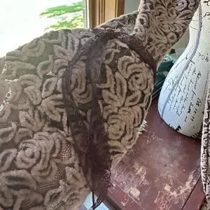 O2 Collection vintage-like boho gothic velvet, somewhat stretchy, above the knee, lace, button back, beautiful Fall colors, I hate to let this go nonsmoking home
