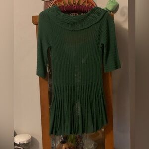 "O2 Collection" Cardigan ~ Moth green knit cardigan with ruffles and a single button closure ~ S-M ~ crochet-style knit and signature ruffle trim along the open front and hem