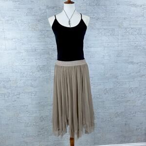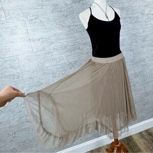 O2 Collection tan swiss dot sheer mesh handkerchief tulle midi skirt