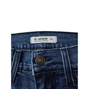 O2 Denim Flare Jeans Size 24 24x34 Distressed Knee High Rise Stretch Made in USA