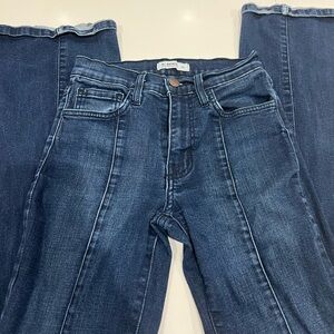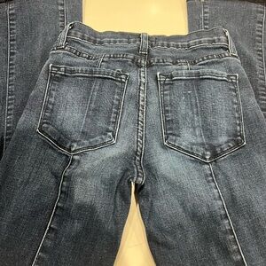 O2 denim jeans size 25 with slight stretch. Waist 11” laying flat 32.5” inseam slight fraying on bottom (see in picture)