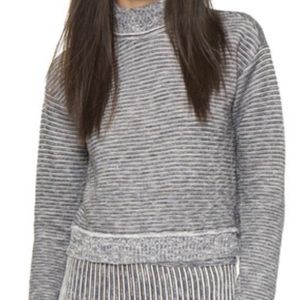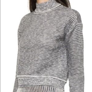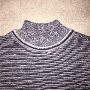 Marled strands bring visual depth to this cropped turtleneck silhouette. Ribbed edges. Long sleeves. Color: Navy. Fabric: Marked fine knit (46% cotton, 43% polyester, 11% nylon. Only worn once. Size S.