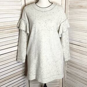 O’2nd Cream Gray Felted Wool Blend Speckled Ruffle Trim Sweater Mini Dress 1 S