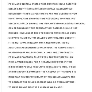 -I PLACE MUCH IMPORTANCE ON BUYERS WHO HAVE PREVIOUSLY PURCHASED FROM ANY BUYER ON POSHMARK AND FOLLOWED PROPER PROTOCOL-ACCEPTED PURCHASE IN A TIMELY MANNER, LEFT A STAR RATING & A LEFT AN OPTIONAL KIND COMMENT.REVIEW MY NUMEROUS FEEDBACK RECEIVED FROM MY VALUED CUSTOMERS