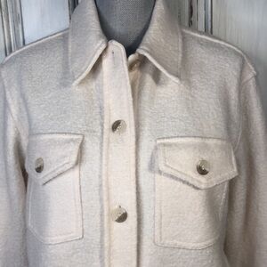 OAK & FORT Thick Rayon Wool Blend Long Sleeve Pointed Collar Button Down Shacket