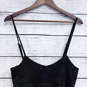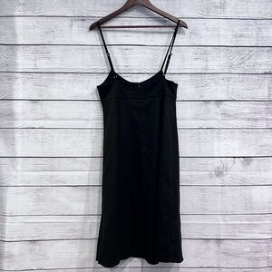 OAK FORT Women’s Black Solid V-Neck Adjustable Strap Midi Dress Size Medium