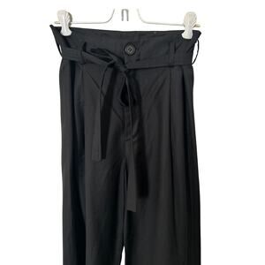 OAK NYC High Waist Wool Pleated Trousers – Black Pants w/ Belt Detail, Size M