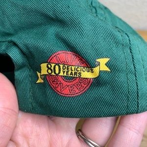 Oakland A's 25th Anniversary Green And Yellow Vintage 1992 Snapback Baseball Hat. Back has a little logo: Life Savers 80 Delicious Years. Oakland Athletics Traditional Green With Yellow bill. Underside of bill is gray and shows signs of wear. Hat itself is in good condition, wrinkled from hanging on Grandpa's wall so long! Please review pictures before purchasing - priced accordingly! Tag reads: RN 38106 Fabric - 100% Cotton One Size Fits All Made In China Wash Separately Embroidery: 100% Rayon" MLB major league baseball Oakland California The Bay Stomper Elephant