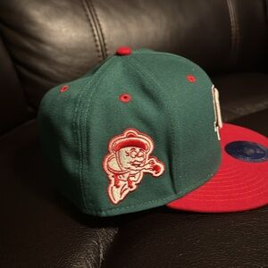 Show off your team spirit with this colorful Ebbets Field Flannels fitted hat. The hat features the iconic Atom character, representing the Oakland Oaks, and is made with high-quality materials for a comfortable fit. This hat is perfect for any fan of the team and is sure to make a statement.