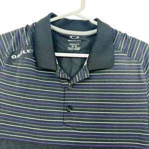 OAKLEY Golf Polo Shirt Striped Colorblock Stretch Mens Size Medium Gray Purple