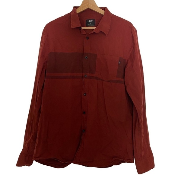 OAKLEY MENS SHIRT LONG SLEEVE BUTTON DOWN Y2K RED SIZE LARGE