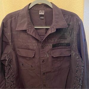 OAKLEY Men Black Distressed Graphic Button Long Sleeve Top Size Large