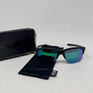Nice Thinlink glasses by Oakley. Matte black semi rim frames and jade iridium lenses. Green O logo on the sides. Comes with box (damaged), dust bag, and papers. Brand NWT. Men’s style but could be worn by women as well.
