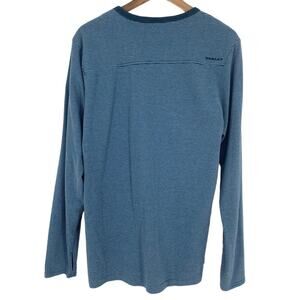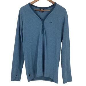 OAKLEY Striped Quarter Button Long Sleeve Shirt Teal Blue Size Large Thumb Holes