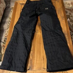 Oakley ski pants , black, adjustable Velcro waist tabs, vented thighs, gaiters, zipper boot entry, 2 front zipper pockets and 2 zipper pockets in back, in good condition