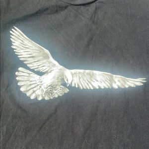 Stylish black t-shirt featuring a striking white bird graphic. Perfect for casual wear.