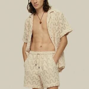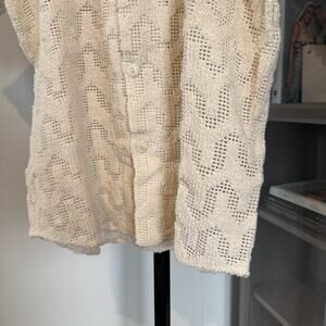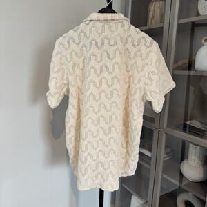 OAS Cuba Crochet Short Sleeve Atlas Ivory Casual Button Up Camp Shirt XL NEW