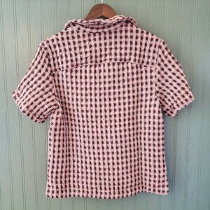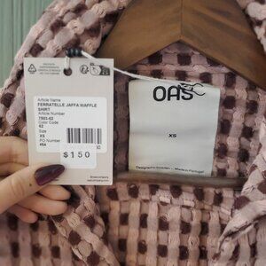 The Ferratelle Jaffa waffle shirt is woven with generous amounts of cotton to a waffle texture that feels particularly soft and breezy against skin, creating a checker pattern with yarns in different shades. Tailored to an oversize silhouette with an open collar and elbow-length sleeves.