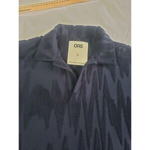 OAS Terry Cloth Mens Medium Blue Short Sleeve Glitch Polo Towel Shirt