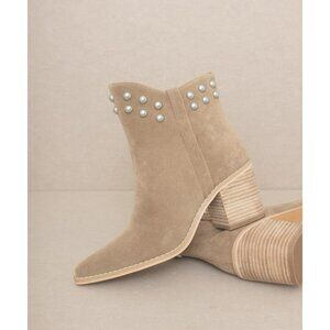 Studded collar booties are a stylish and edgy footwear choice that adds a dose of attitude to your look. These boots typically feature metal studs or spikes along the collar or ankle, making a bold fashion statement. With their unique detailing, studded collar booties are perfect for those who want to stand out and showcase their individual style, especially when paired with various outfits from casual to rock-inspired ensembles.