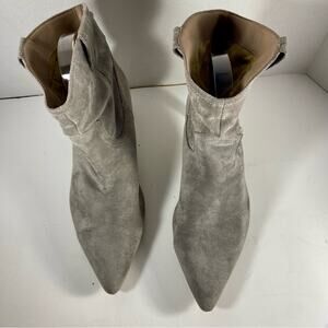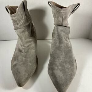 OASIS SOCIETY cowboy boots western gray suede pointed toe slouchy kitten heel