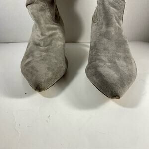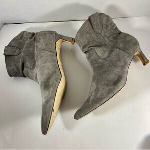 FEATURES/ACCENTS: faux gray suede pointed toe kitten heel slouchy ankle bootie