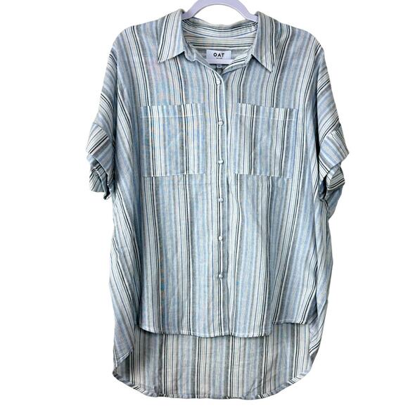 OAT Blue Striped Button-Down Top NWT Size Large
