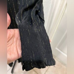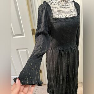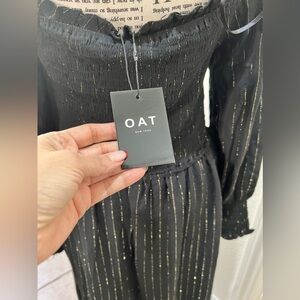 OAT NY Black Gold Metallic Puff Long Sleeve Smocked Maxi Dress NWT