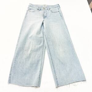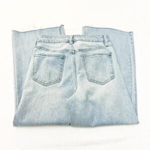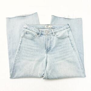OAT NY Light Wash Wide Leg Raw Hem Cropped Zip Fly Denim Jeans Size 4 / 27