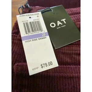 OAT NY Women's High Rise Corduroy Skinny Jeans Burgundy Stretch Streetwear NWT Casual School