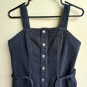 Jumper, romper, Overalls, Black denim romper, Tie Waist Romper, minimal utility style, charcoal jumpsuit, wide leg overalls, workwear aesthetic, streetwear, minimalist, uttilitarian, black denim romper, Cropped Romper, Wide Leg Romper, Wide Leg Jumpsuit, wide leg denim overalls, Utilitarian, Streetwear, Minimalist, Workwear Aesthetic, Jumpsuit, Utility Overalls, Workwear Inspired Overalls