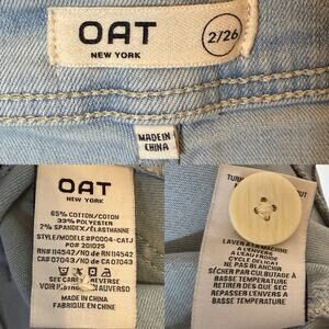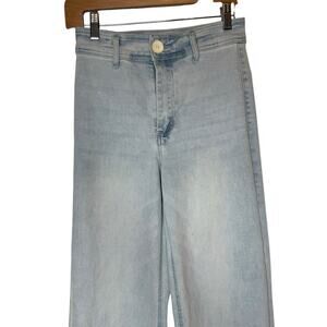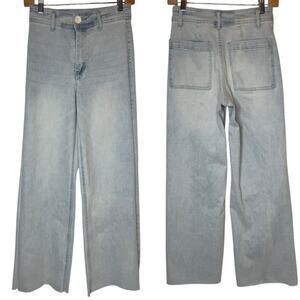 OAT New York High Rise Wide Leg Jeans in Powder Wash Raw Hem, size 2 / 26
