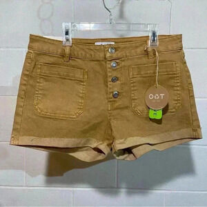OAT New York Mid Rise Button Fly Cuffed Denim Short Brown Boho Festival Stretch NWT
